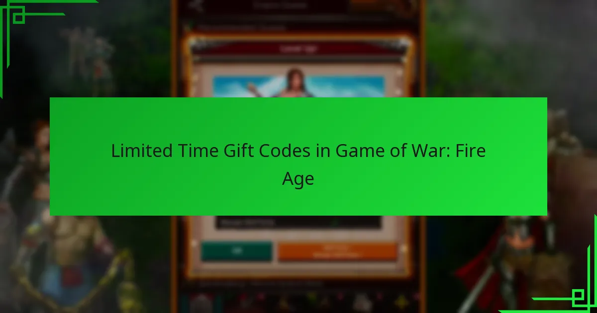 Limited time gift codes in Game of War: Fire Age are exclusive promotional codes that players can redeem for valuable in-game rewards such as currency, boosts, and items. These codes are available for a short duration and can be obtained through official channels and community interactions. To redeem them, players must enter the codes in the designated area within the game, usually found in the settings or rewards section. Key sections in the article: Toggle What are Limited Time Gift Codes in Game of War Fire Age? Definition and purpose of gift codes Types of rewards from gift codes Expiration…